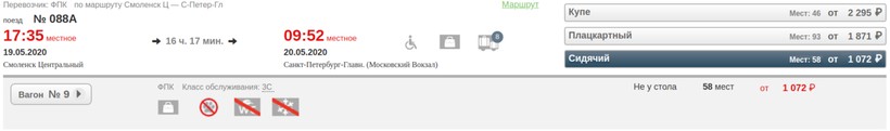 С целью экономии средств советую покупать проездные хотя бы за месяц до отправления (поезд № 088А входит в программу динамического ценообразования), тогда можно надеяться на такие цены: