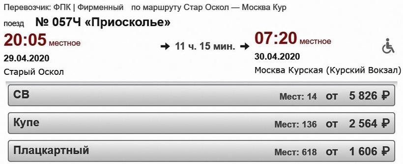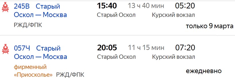 Актуальные расписание поездов Старый Оскол — Москва, стоимость жд билетов и информация о наличии билетов на скорые поезда АО «ФПК».