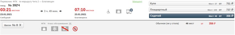 Актуальные цены и расписание поезда Свободный — Благовещенск, Амурская область, стоимость и информация о наличии билетов на пассажирские, скорые фирменные и скорые поезда АО «ФПК».