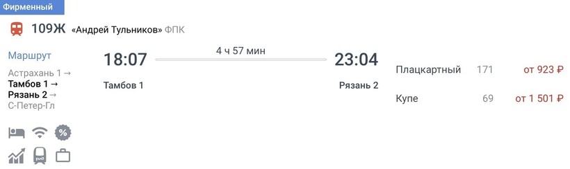 Актуальные цены и расписание поезда Тамбов — Рязань, стоимость и информация о наличии билетов на скорые и скорые фирменные поезда Local carrier.