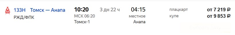 Актуальные цены и расписание поезда Томск — Анапа, стоимость и информация о наличии билетов на скорые поезда АО «ФПК».