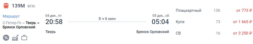 Актуальные цены и расписание поезда Тверь — Брянск, стоимость и информация о наличии билетов на скорые поезда АО «ФПК».