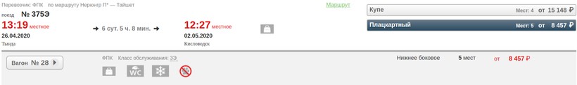 купе (применяется динамическое ценообразование) — 15148 рублей.