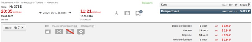 Актуальные цены и расписание поезда Тюмень — Махачкала, стоимость и информация о наличии билетов на пассажирские поезда АО «ФПК».