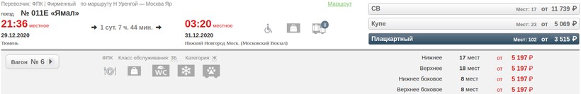 Актуальные цены и расписание поезда Тюмень — Нижний Новгород, стоимость и информация о наличии билетов на скорые и скорые фирменные поезда АО «ФПК».