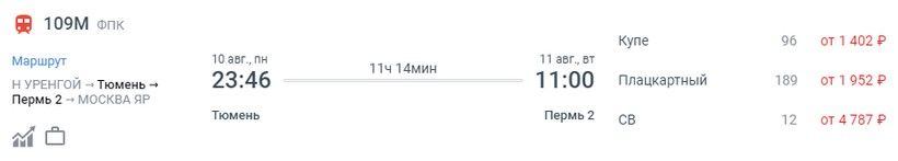Актуальные цены и расписание поезда Тюмень — Пермь, стоимость и информация о наличии билетов на скорые поезда АО «ФПК».