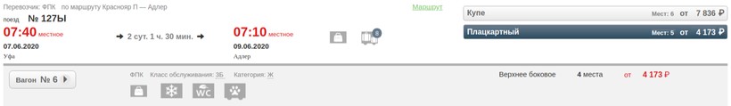В купейных вагонах действует программа динамического ценообразования, билеты туда советую брать заранее, хотя бы за 4 недели до путешествия. На плацкарты она не распространяется, стоимость проездных туда не меняется. Расценки за месяц до выезда такие:
