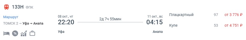 Актуальные цены и расписание поезда Уфа — Анапа, стоимость и информация о наличии билетов на поезда.