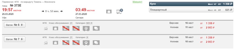 Боковые места в плацкарте и верхние в купе обходятся немного дешевле.