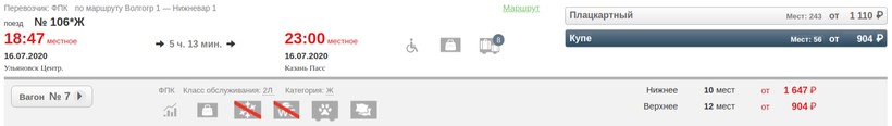 Актуальные цены и расписание поезда Ульяновск — Казань, стоимость и информация о наличии билетов на пассажирские и скорые поезда АО «ФПК».