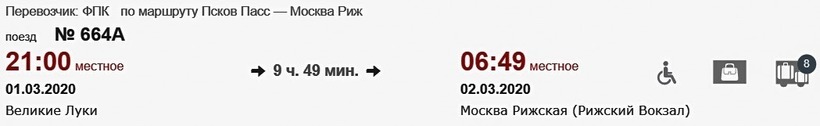 Я предпочитаю преодолевать маршрут на составах № 662А Великие Луки — Москва или № 664А Псков — Москва. Первый поезд курсирует по вторникам, четвергам, пятницам, второй — по средам и воскресеньям. К преимуществам данных составов отнесу удобный график движения (одинаковый для обоих поездов): можно выехать по направлению после окончания рабочего дня (в 21:00) и прибыть в точку назначения рано утром — к 06:49 (тратится только ночное время).