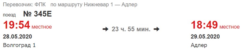 Расстояние между городами составляет примерно 920 километров, проехать такую дистанцию по железной дороге можно за 20–24 часа. Курсирует восемь пассажирских составов, некоторые ежедневные, остальные ездят через день или в определенные месяцы. Уехать можно в любой день, есть несколько подходящих вариантов. Отбытие со станции Волгоград-1, а прибытие на железнодорожный вокзал в Адлере.