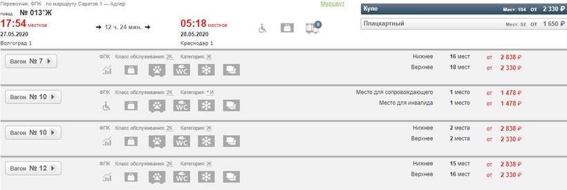Стоимость билетов в последние два типа вагонов может меняться ближе к дате отправления.