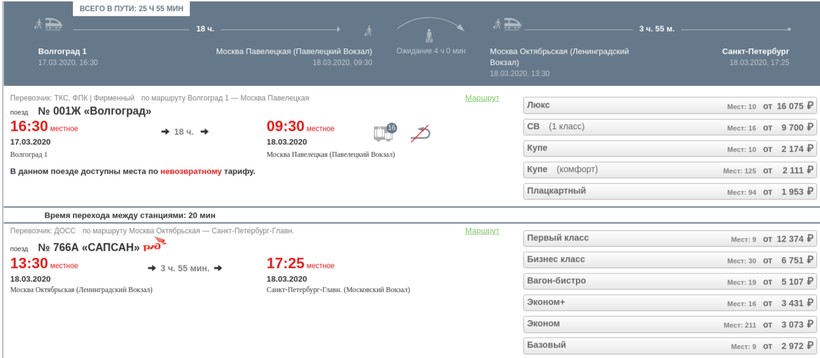 Расписание жд поездов Волгоград — Санкт-Петербург на каждый день, цены на билеты и информация о наличии мест на скорые поезда АО «ФПК».