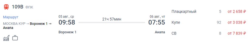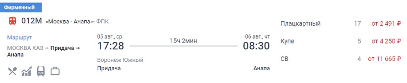 Актуальные цены и расписание поезда Воронеж — Анапа, стоимость и информация о наличии билетов на скорые фирменные и скорые поезда АО «ФПК».