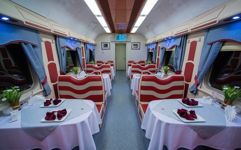 Вагоны современные, оснащены современными удобствами — розетками, разъемами USB, мультимедийными порталами (кроме плацкартов), биотуалетами, кондиционерами. Шумоизоляция хорошая, предоставляется бесплатный интернет. В отдельных вагонах пассажирам выдают свежую прессу (газеты, журналы). Есть вагон-ресторан, меню с широким выбором блюд. Кормят вкусно, еду приносят прямиком к месту, порции большие. В купейных вагонах пассажиры могут выбрать тип питания.