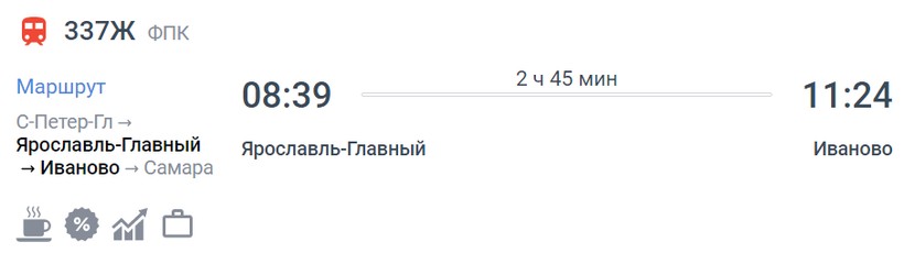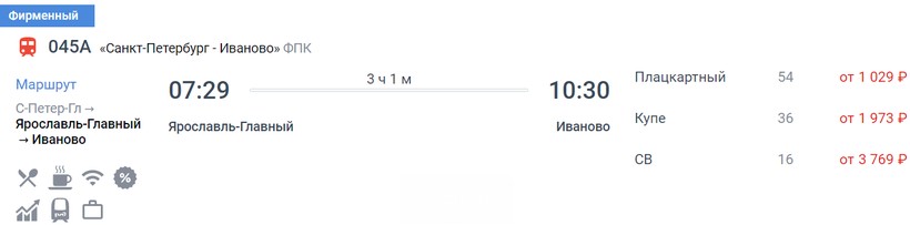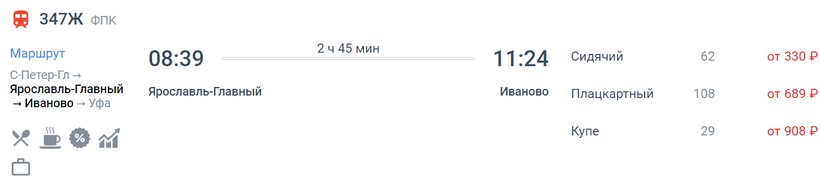 Актуальные цены и расписание поезда Ярославль — Иваново, стоимость и информация о наличии билетов на пассажирские и скорые фирменные поезда АО «ФПК».