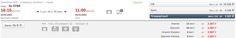 плацкарт — 3287 рублей.