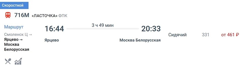 Актуальные цены и расписание поезда Ярцево — Москва, стоимость и информация о наличии билетов на скоростные поезда АО «ФПК».