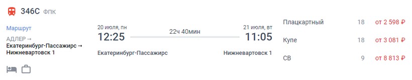 № 346С — самый быстрый на маршруте, домчится за 22 ч. 40 мин.;