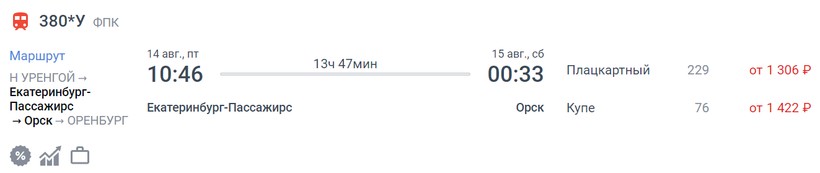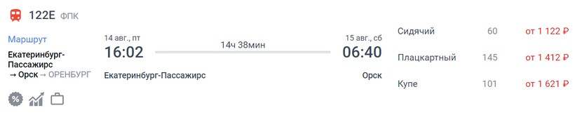 Актуальные цены и расписание поезда Екатеринбург — Орск, стоимость и информация о наличии билетов на пассажирские и скорые поезда АО «ФПК».