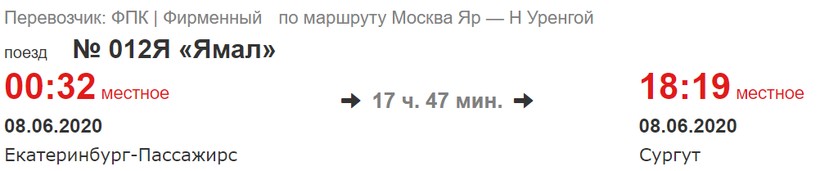 Отбытие с ж/д вокзала Екатеринбург-Пассажирский, прибытие на вокзал в Сургуте.