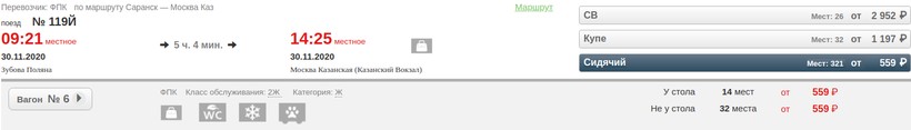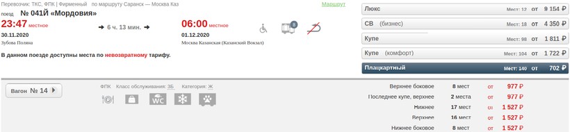 Приведу пример расценок за 4 недели до выезда (на поезд № 041Й «Мордовия»):