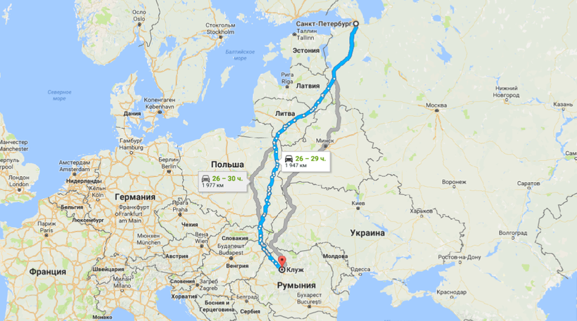 При поездке в Клуж-Напоку москвичам в дороге придется провести около 24 часов без учета ночевки. На мой взгляд, оптимальный маршрут пролегает через Киев, там как раз удобно сделать ночевку. По пути придется пересечь две границы, что может сильно увеличить время поездки.