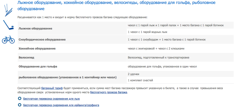 Есть, однако, и приятная новость: провоз спортивного инвентаря здесь, как и в самолетах, бесплатный.