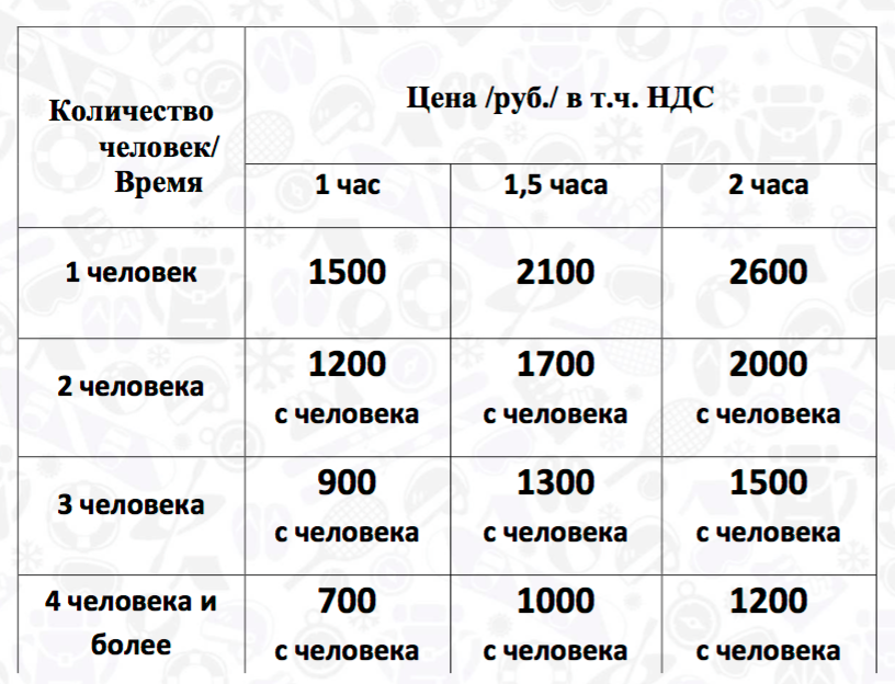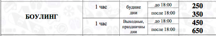 Обращаю ваше внимание, что цены разнятся в зависимости от того, проживаете вы на территории курорта или просто пришли развеяться. Для "своих", само собой, цены ниже. Также в зависимости от количества дней проживания вам бонусом в том или ином количестве достаются бесплатные посещения аквапарка и боулинга.
