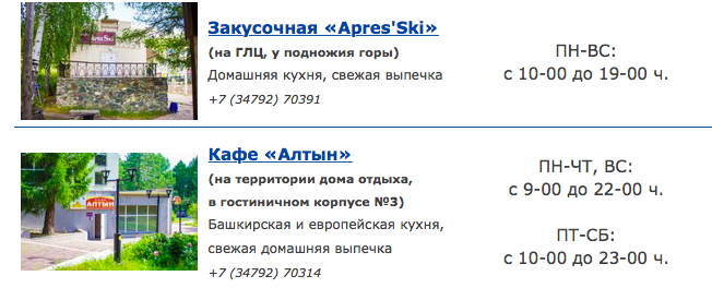 Хотя здесь основное развлечение — это все-таки активный отдых, будь то катание зимой или походы летом, все же есть варианты и для спокойного отдыха, и даже для шопинга: в часе езды находится Магнитогорск, где есть все лучшие магазины масс-маркета.