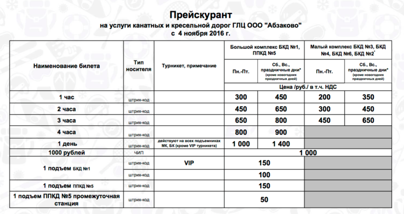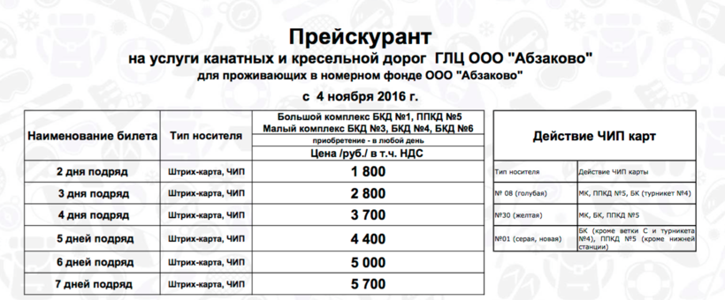 Все цены указаны на сайте, возможны обновления. Обращаю ваше внимание на то, что для проживающих на территории курорта действует так называемое специальное предложение. Ски-пассы можно купить на территории жилого комплекса и на самой горе.