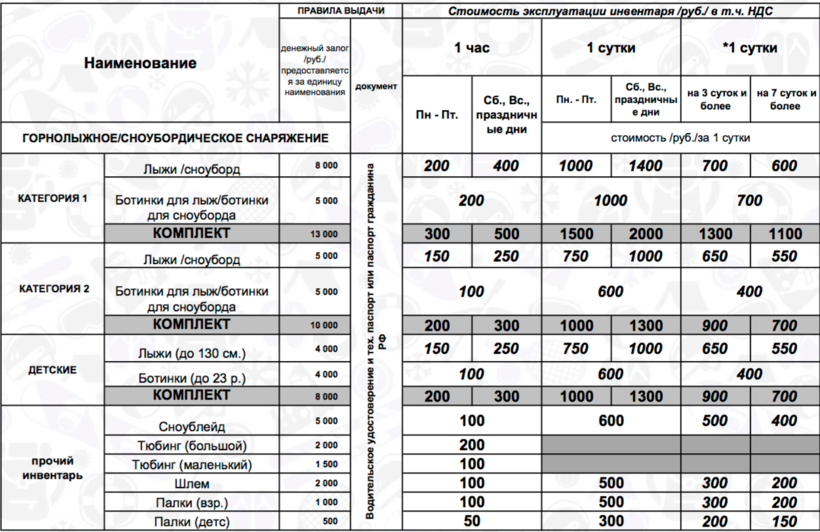 В прокате вы можете подобрать оборудование для спуска с горы с почасовой, дневной или посуточной оплатой.