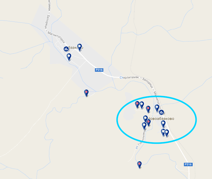 Как видно из скриншота, голубая зона, куда входят село Новоабзаково и курорт "Абзаково", – самая удобная по расположению.
