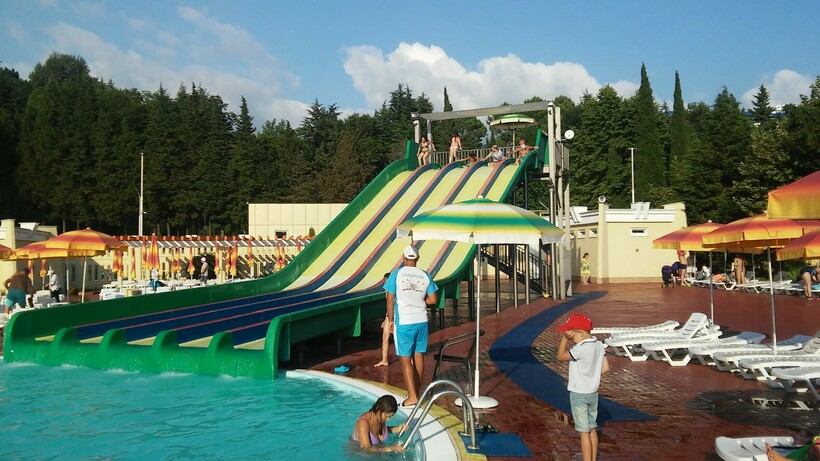 Посетители, отважившиеся покорить эти экстремальные серпантины, внизу попадают в открытый бассейн. Увидеть горки можно на интернет-портале комплекса. Аквапарк (Адлер), официальный сайт которого находится на странице отеля «Весна», разместил там фотографии территории.