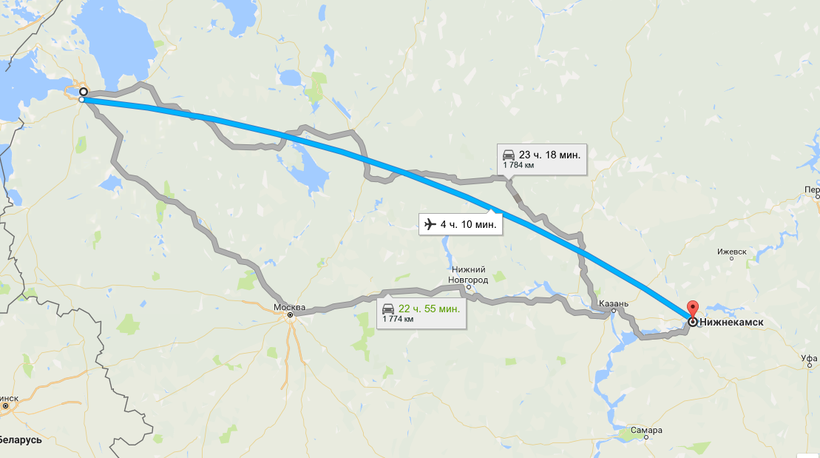Если точка вашего отправления – Санкт-Петербург без пересадок тоже не обойтись. Для начала вам необходимо доехать до города Кез и заплатить за это 3900 рублей. Спустя один день и два часа вы прибудете на место назначения. До следующего поезда у вас есть три часа. Я советую потратить это время на изучение местности и подкрепиться в понравившемся вам месте. Дорога из Кеза до Альметьевска занимает 11 часов и 20 минут. Таким образом общее время в пути занимает один день 16 часов и 46 минут, а цена с учетом пересадки составит 5 126 рублей на плацкарте.
