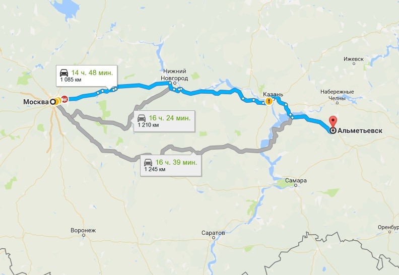 Если поездка на автобусе вам кажется сомнительной, вы можете выбрать поездку на сервисе поиска попутчиков. Не стоит бояться, если вы плохо спали ночью. Дорога от Москвы до Альметьевска на автомобиле занимает приблизительно 15 часов, поэтому выспитесь по дороге. Цена, которую попросят за поездку, составит приблизительно 2 000 рублей. Если вы выезжаете из Санкт-Петербурга, одно место в автомобиле будет стоить 3 000 рублей, а время в пути займет практически сутки.
