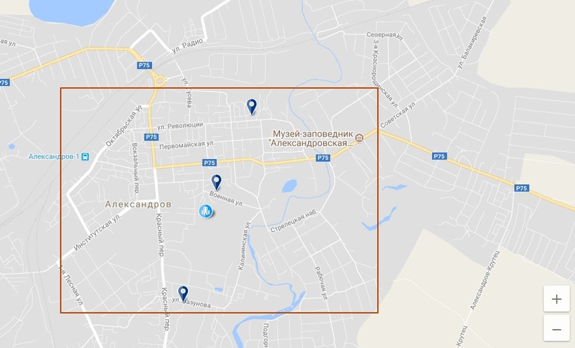 Поскольку Александров относится к небольшим городам, названия имеют только обособленные районы, отданные под частную застройку и не располагающие местами для ночлега приезжих. Для удобства я выделила на карте условный центр, который поможет вам сориентироваться в поиске жилья.