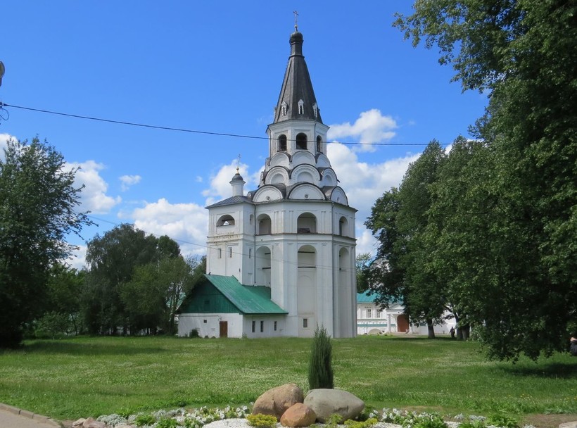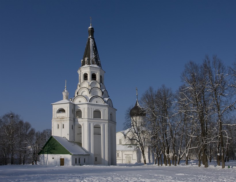 Находясь на территории музея, стоит обязательно забраться на обзорную площадку, размещённую на вершине старинной колокольни, откуда несложно будет рассмотреть все древние постройки Кремля. Стены этого здания намного позже, в эпоху Петра I, стали очевидцами заточения в слободе непокорных царевен-сестёр, стремящихся прийти к власти.