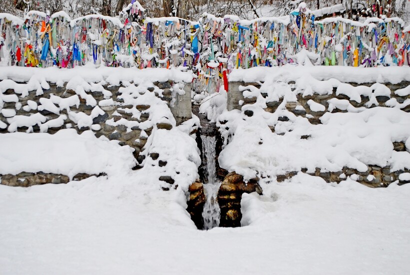 ЭТО ИНТЕРЕСНО! У источника есть и еще одна особенность, на фото Аржан-Суу зимой видно, что вода в нем не замерзает.