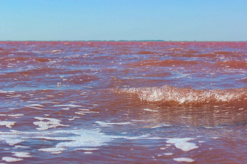 Отдыхающих привлекает и розовый цвет водоема. На фоне о. Бурлинского получаются яркие и интересные фотографии, которые выглядят так, словно над ними поработали в фотошопе. Если хотите полюбоваться ярко-розовым цветом воды, лучше приезжать сюда в жаркие дни. Солнце мобилизует жизненную активность водоросли. В пасмурное время года это водоем привычных голубых оттенков.
