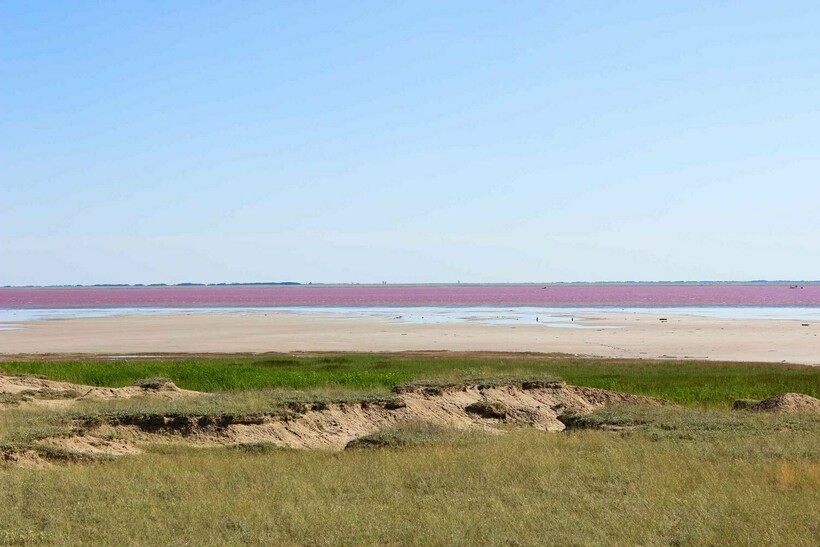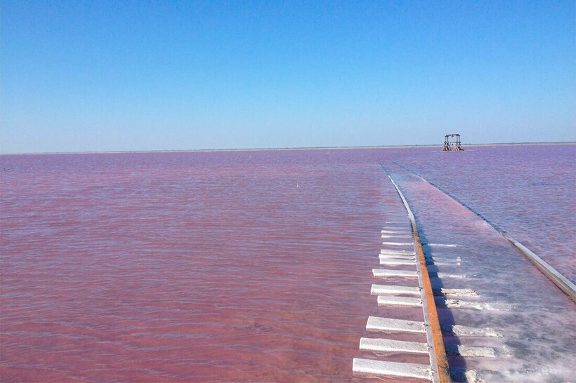 Бурлинское озеро (озеро Бурсоль), Алтайский край — одна из главных достопримечательностей региона. К нему приезжают тысячи туристов со всей России. Это необычное озеро в Алтайском крае, железная дорога проходит прямо через него. Еще одна особенность — розовый цвет воды. Это связано с тем, что в водоеме обитает водоросль, производящая специальный пигмент, благодаря которому акватория приобретает столь интересный оттенок. Именно поэтому Бурсоль часто называют Розовое озеро.