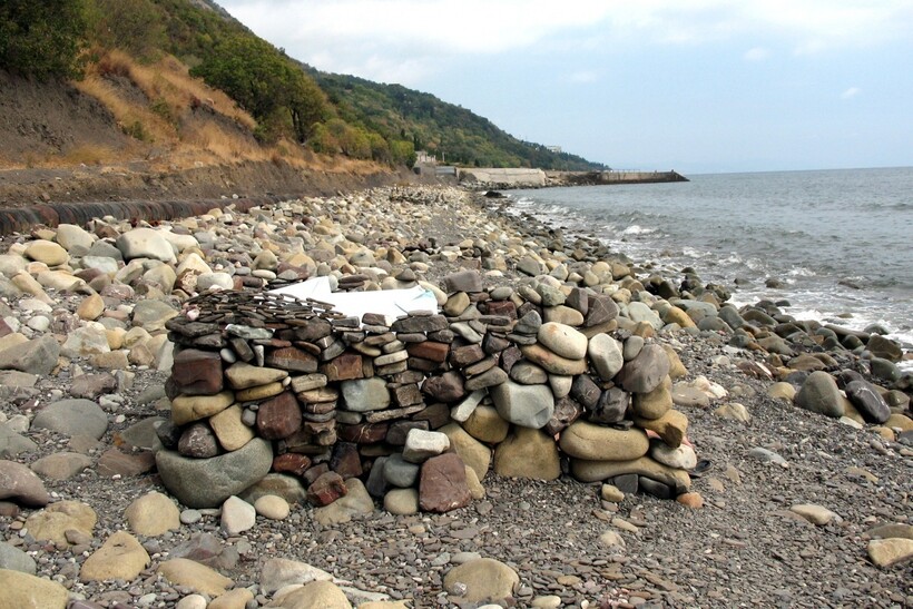 Протяжённость этого участка вдоль моря — почти километр. Этот пляж остался диким и нетронутым. На прибрежном склоне — валуны и камни скруглённой формы, которые, действительно, напоминают яйца динозавров. Сточил эти камни морской прибой.