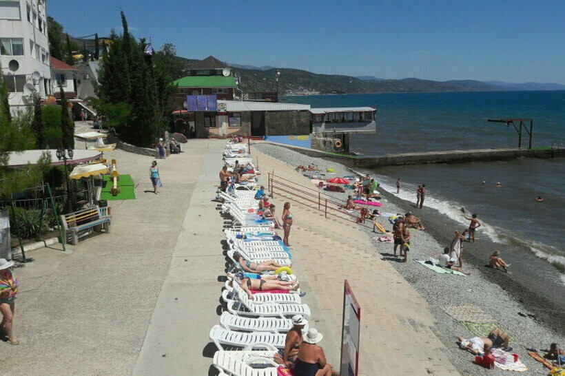 Веб-камера Алушты, размещенная на частном пляже оздоровительного комплекса «Дубна» в западной части курорта, демонстрирует песчано-галечную береговую полосу с шезлонгами и зонтами. Трансляция позволяет туристам, проживающим в этом отеле, оценить загруженность и благоустройство пляжной зоны (многолюдно ли, какие водных аттракционов доступны), что особенно актуально в высокий сезон.