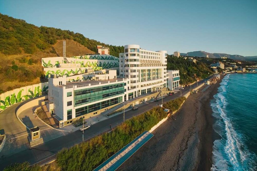 Панорамная камера оздоровительного комплекса «Крымские зори», построенного на возвышенности в окружении живописного парка, дает возможность наблюдать за восходом солнца и его закатом над морем, а также следить за кораблями на горизонте.
