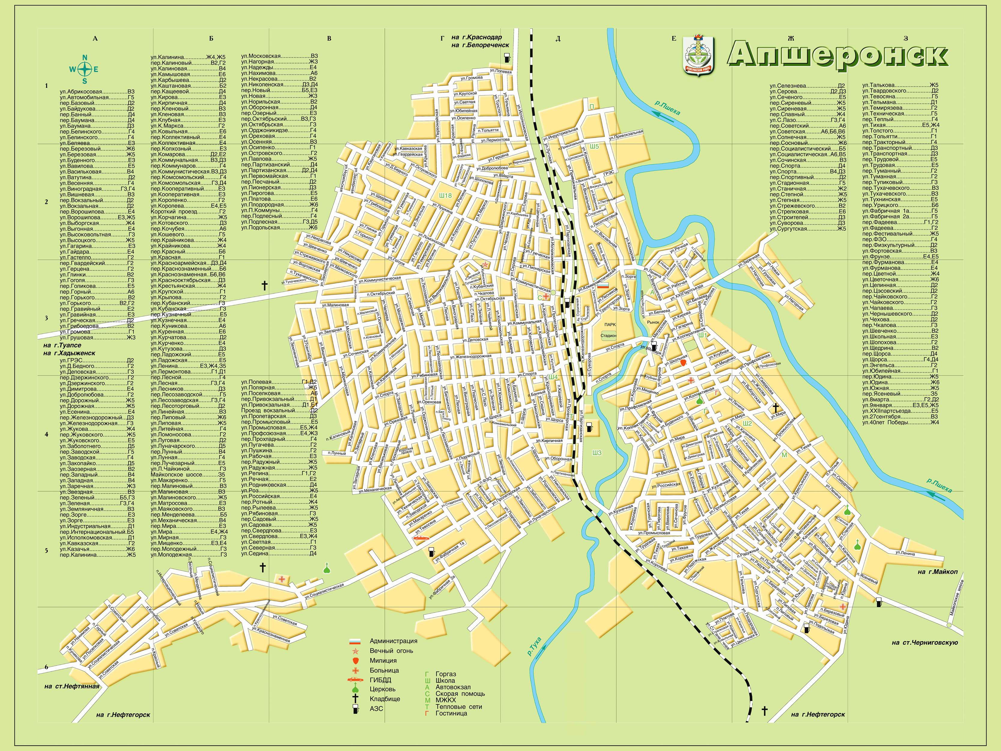 В списке популярных карт можно посмотреть карту Апшеронска на русском с достопримечательностями. Для скачивания карт достаточно щелкнуть мышкой по изображению.