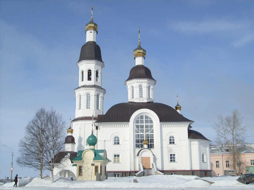 История города очень тесно переплетается с историей храма. Первый храм был построен еще в 17 веке. В 1694 году на службе присутствовал Петр Первый. Затем последовали многочисленные перестройки храма, пока он не был уничтожен в 1922 году советской властью. Восстановлен лишь в 2004 году. Находится на набережной в центе города и возвышается над окружающими строениями. Удивительное смешение церковных традиций и современных строительных технологий. Прекрасно выглядит с воды. В близлежащем парке любят фотографироваться молодожены.
