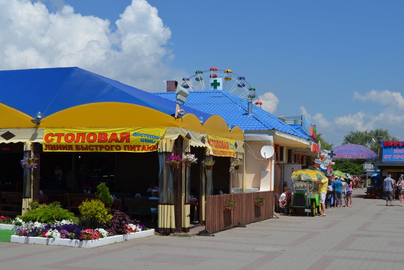 В селе много столовых, кафе, ресторанов, как на самой набережной, так и в отдалении от моря. На пляже находится множество мини-кафе, где можно купить чебуреки с пылу с жару, картофель фри, кукурузу, чипсы, чтобы тут же, не отходя от насиженного места на пляже перекусить. Цены — средние по курортам Черноморского побережья. Незатейливо пообедать можно за 300 RUB, чебуреки — по 70 RUB. Конечно, не возбраняется взять с собой на пляж контейнер с едой или арбуз: не все могут позволить себе все время питаться в кафе.