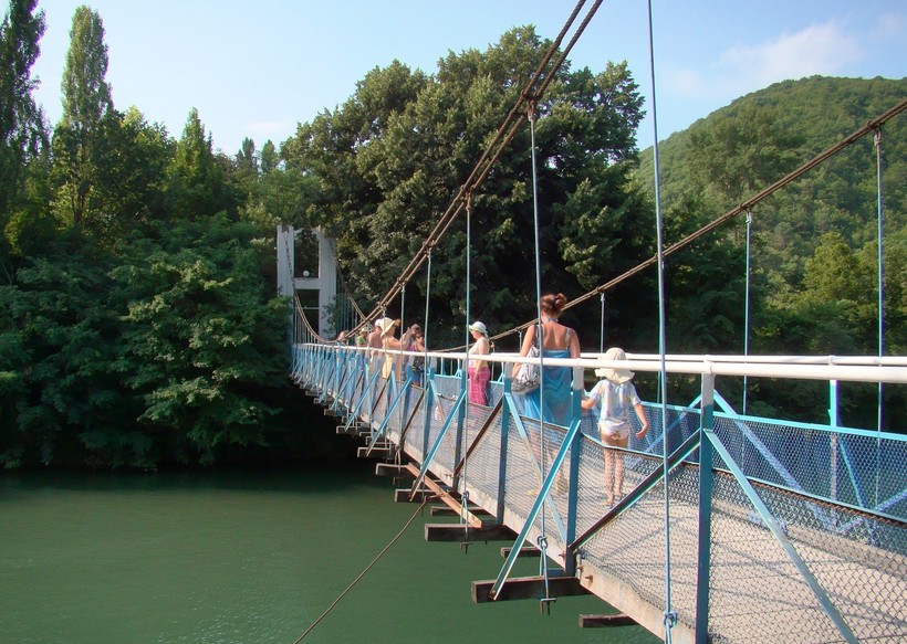 Туда можно заказать экскурсию, потому что часть маршрута идет по реке Пшада. Вам придется или самим идти по руслу реки или, в случае заказа экскурсии, вас довезут почти до места на внедорожниках.