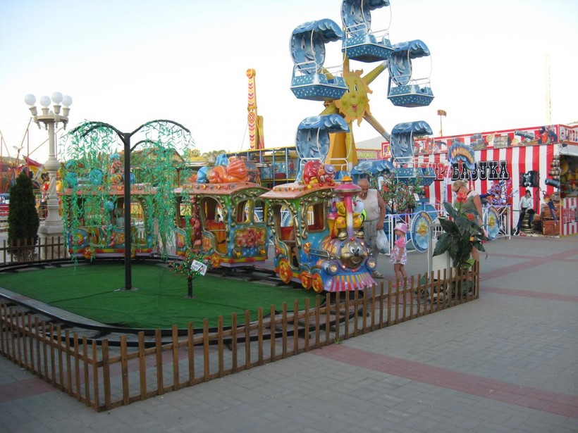 Находится недалеко от набережной, ул.Школьная 103. Довольно большой парк аттракционов с колесом обозрения посередине. Мимо него точно не пройдете! Цена билетов начинается от 100 рублей за ребенка. Ассортимент развлечений достаточно разнообразен, любителям аттракционов советую сходить туда однозначно.